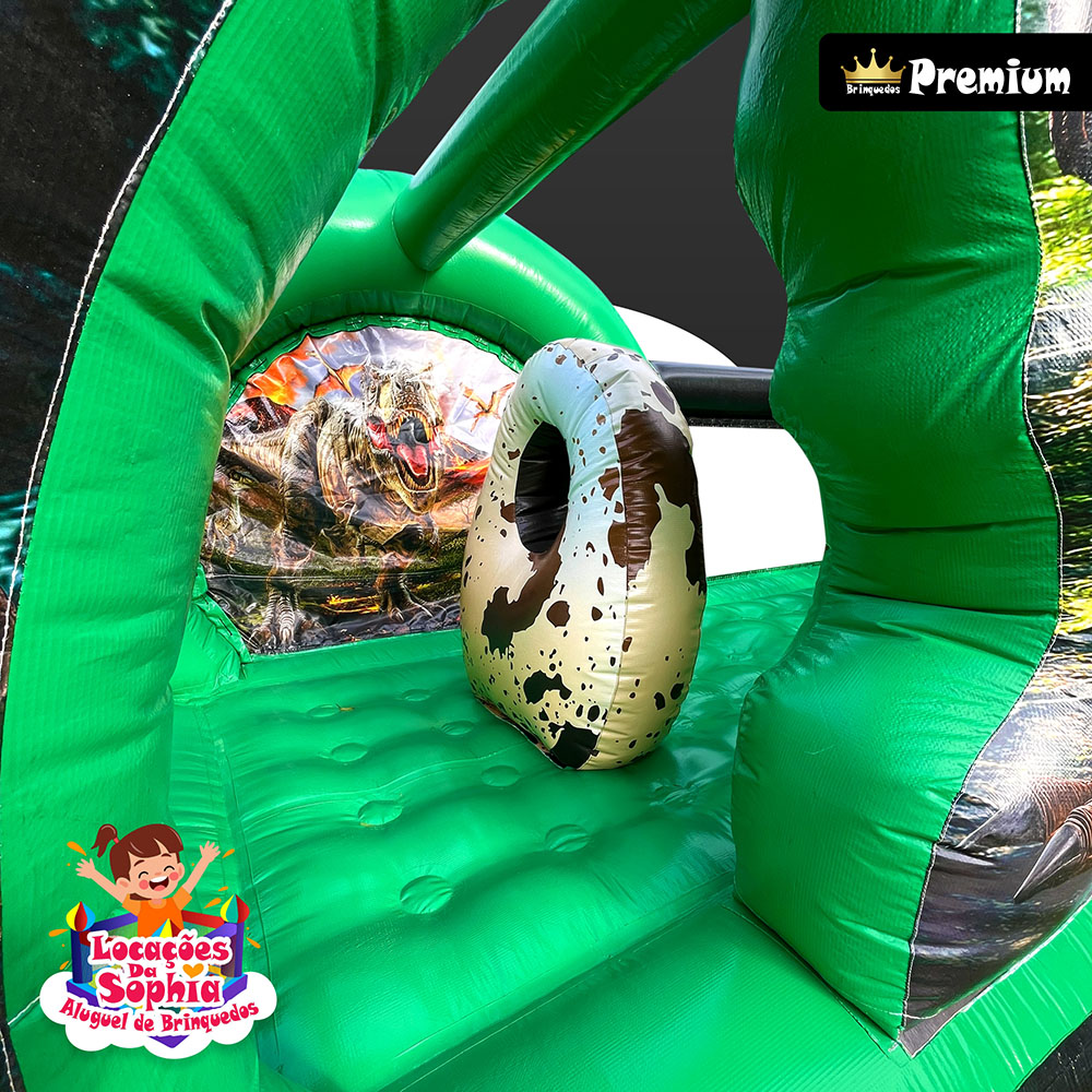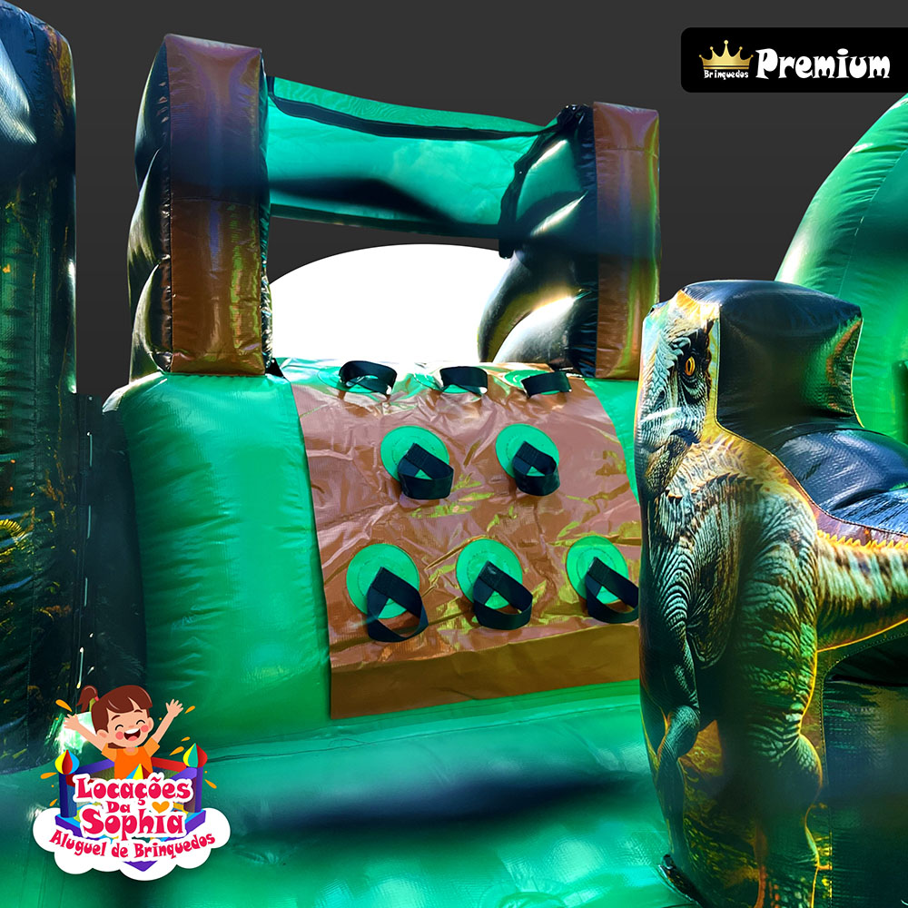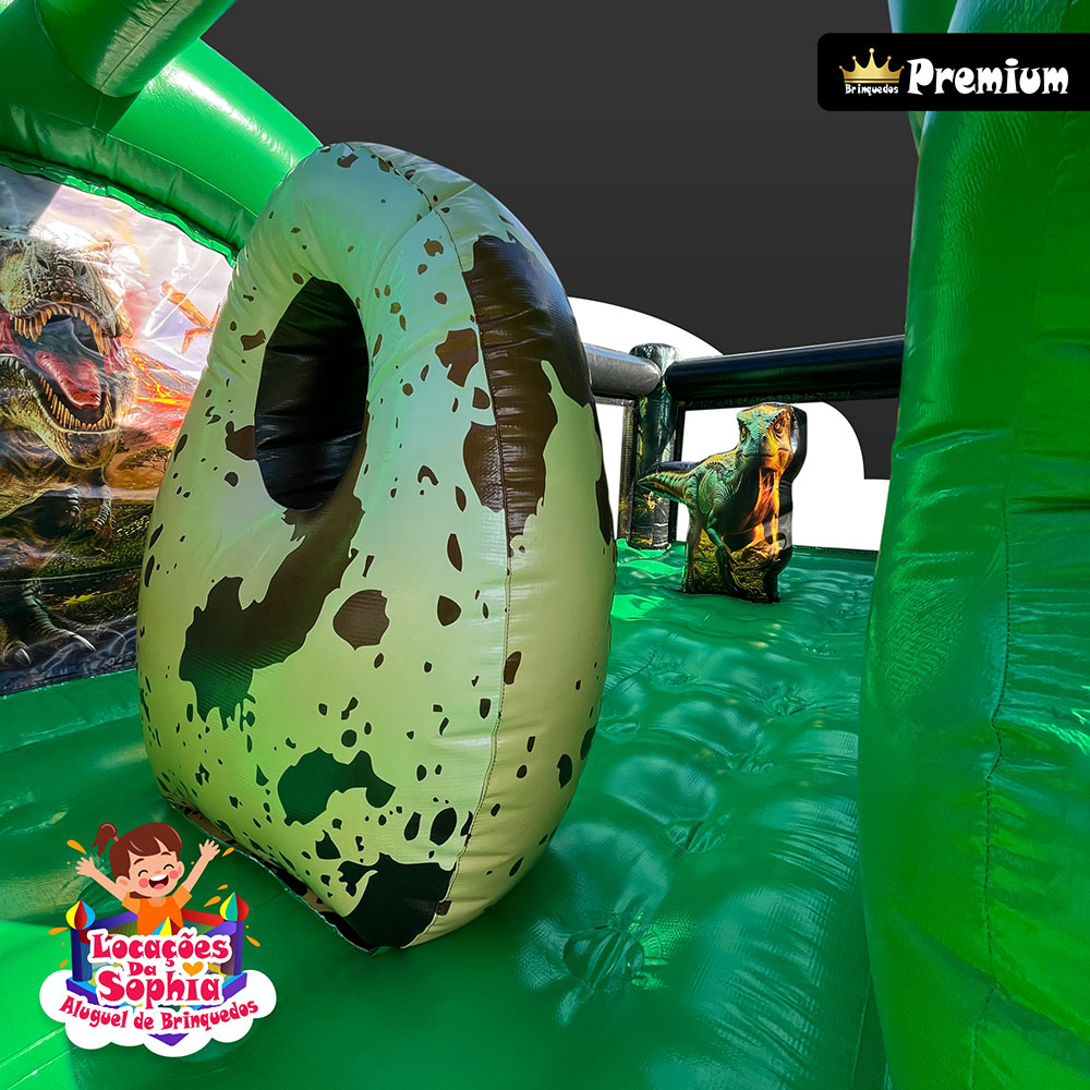 Tamanho ideal para proporcionar uma experiência completa, com área para pular, brincar e se aventurar em um cenário jurássico cheio de imaginação.